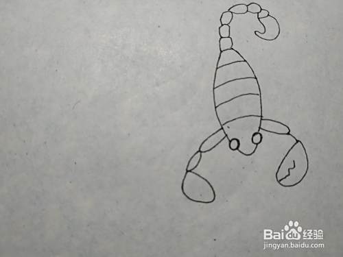 首先在白纸上画出两个小圆圈,作为蝎子的眼睛。