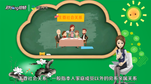 “主要社会关系”指除本人家庭成员以外的旁系亲属关系。