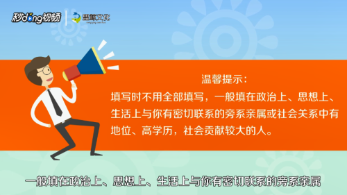 和本人关系密切及受其影响较大的亲友、老师、同学等,会要求填写“家庭主要成员”和“主要社会关系”,按表格顺序填写即可。