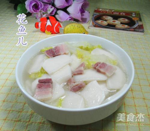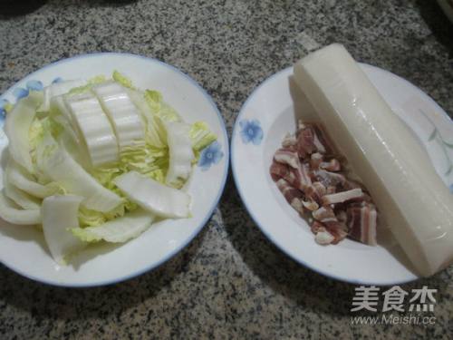 食材:白菜(已清洗切开)、咸肉(已切片)、年糕