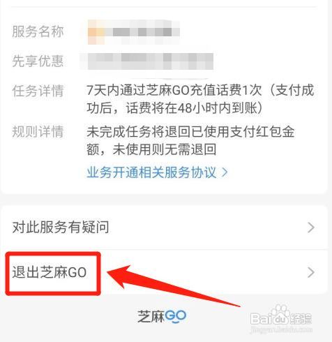 跳转页面后,点击下方的【退出芝麻GO】即可。