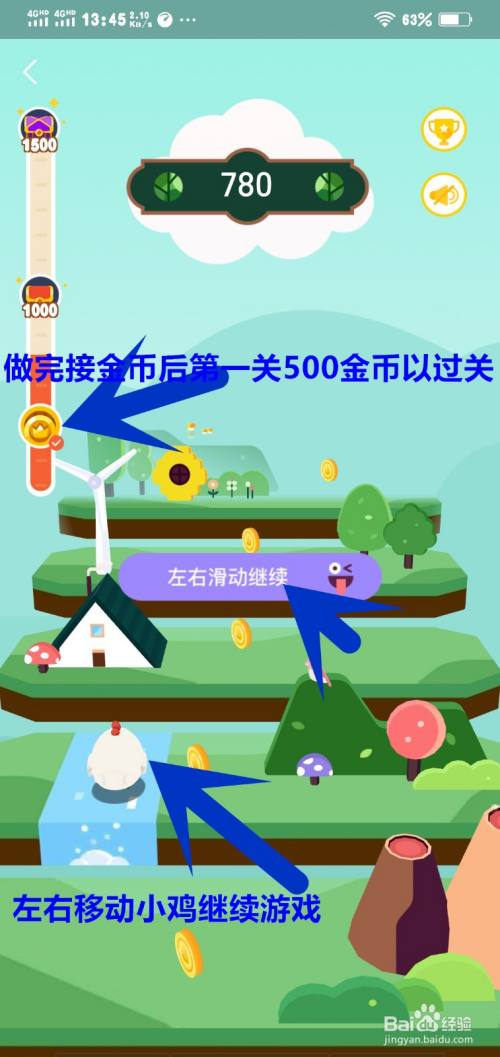 按住小鸡继续前进,如果没过关可以点击继续挑战直到3个宝箱都打开。