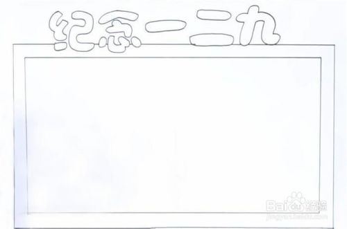 写上“纪念一二九”几个字,接着在下面画上一个矩形双边框。