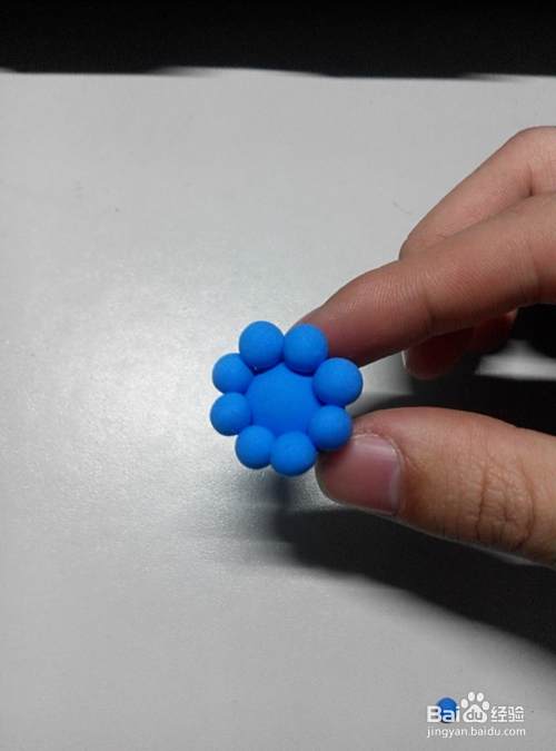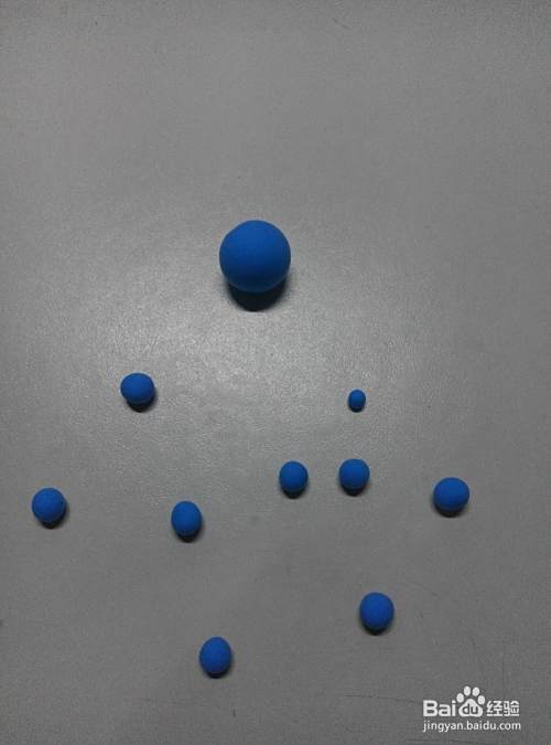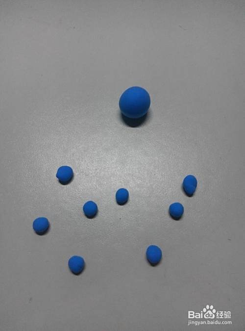 将黏土揉成一个大圆球个八个小圆球,以及一个更小一点的球