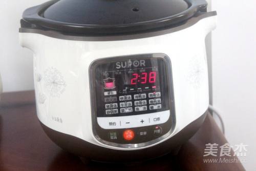 放入清水倒料酒进入煲汤模式。按自己的喜好选择功能煲汤键。