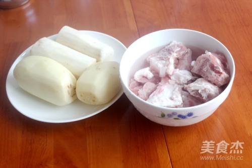 筒骨用温水洗净后放冷水泡2小时,中途半小时换一次清水。莲藕淮山洗净处理好待用。