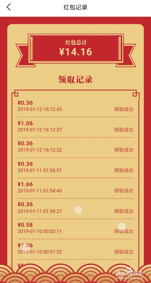 返回活动界面,点击红包记录,可查看领取的红包记录。