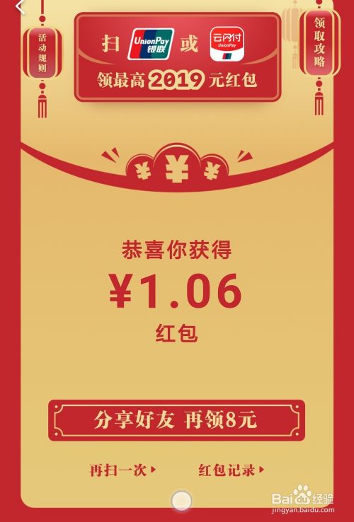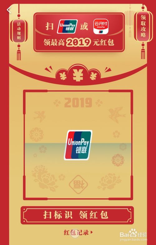 最近云闪付开启了新年扫银联标志领红包活动,每天有三次机会,第一次扫的红包份额最少都在五块钱以上,运气爆发的话,最高2019等着你,以后每天的总额也都有一两块。在这里教你怎么扫银联标志得红包。