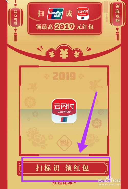 在活动界面,找到“扫标识,领红包”字样,点击进去扫描界面。