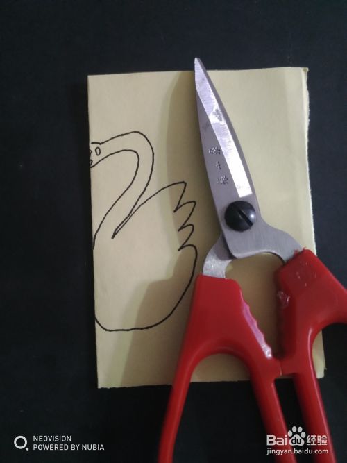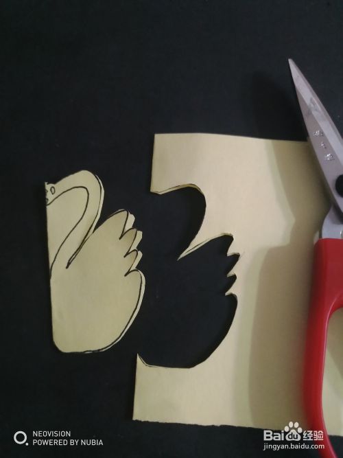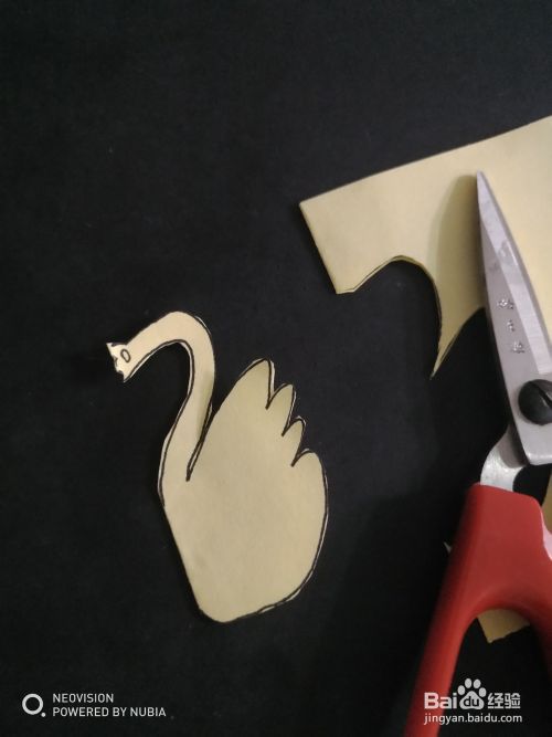第五步,用剪刀按照画好的天鹅裁剪出来。