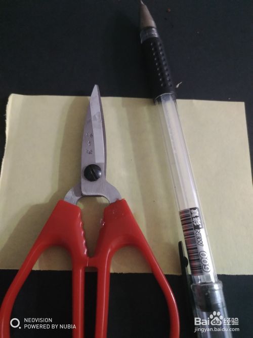 第一步,我们先把要使用的剪刀、纸和笔拿出来。