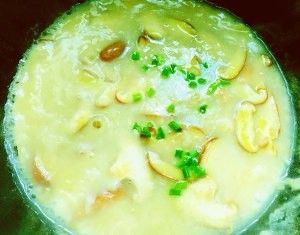 倒入面粉液,此时可以再加些清水,搅拌均匀,大火烧开。