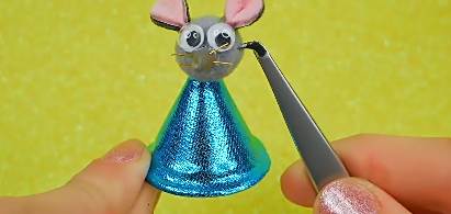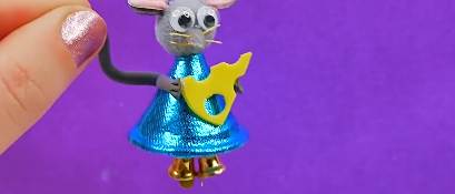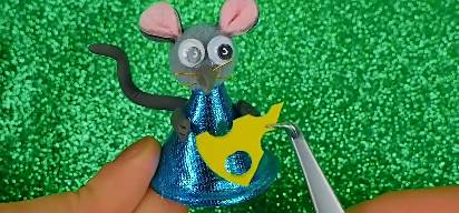 用织布做出一个小老鼠娃娃吧,剪出两个小圆圈弄成耳朵,把耳朵贴在布球上,粘上眼睛,用橡皮泥捏出鼻子,用铁丝做小胡子,用漏斗做出身体,披上蓝色外衣,将头放在身体上,弄上小尾巴,加上小铃铛,这样就好了,鼠年夜小老鼠守护芭比公主吧