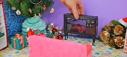 用个小盒子给芭比公主做一个电视机吧,讲小盒子涂上黑色颜料,用橡皮做电视机的按钮,用滴管做脚架,图上黑色颜料,粘在电视机上,这样芭比在家就不无聊了