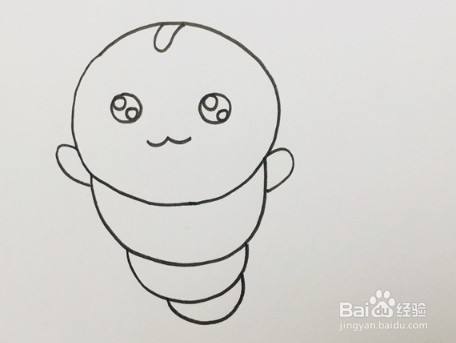 接着在头部与身体第二节的连接处两侧,将蚕的两只小手画出来。