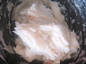 搅拌直到没有干面,放凉会儿,手上抹油把它取出来,一定要抹油不然会很黏