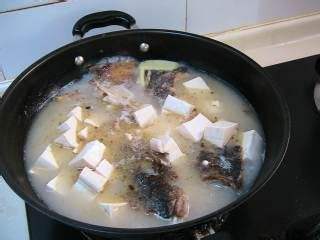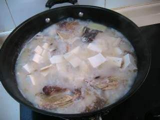 在砂锅中加入一些清水,以没过鱼头为宜3大火煮至沸腾,改中小火煮15分钟,直至汤呈奶白色
