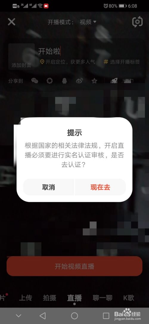 如果是第一次开启直播的朋友,我们一般还需要进行实名的认证审核,点击“现在去”完成审核再来开播。