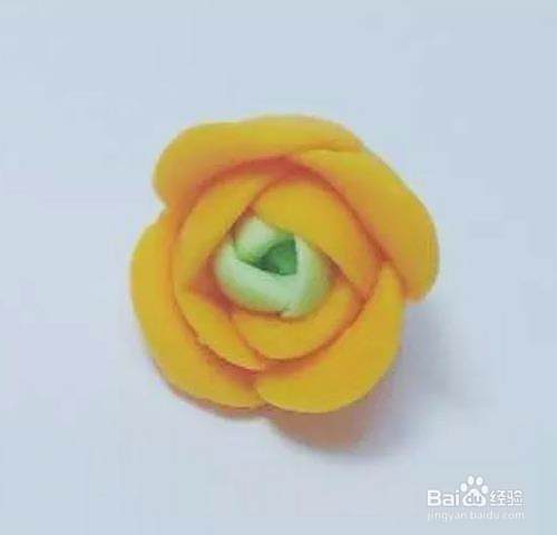 取浅绿色粘土搓成光滑的扁扁的细长条,将其绕圈围成花朵状即可,围的时候,注意一定要以底端为中心点,不放手,慢慢的将其围成花朵状。将黄色粘土捏成光滑的近似水滴状,做成花瓣,将每片花一圈一圈的粘到花朵的外围,漂亮的小花就做好了。