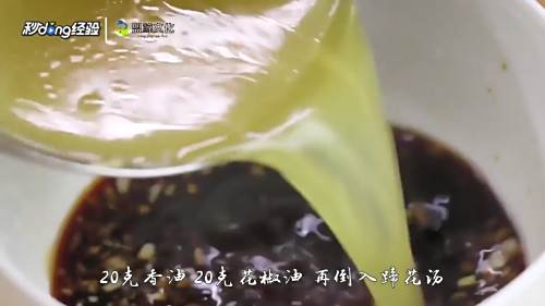 10加入20克香油、20克花椒油、倒入蹄花汤。
