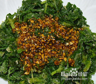 最后蒸茼蒿时,准备调料汁,大蒜切成蒜蓉,加入生抽、蚝油、陈醋、香油调匀成调料汁,蒸好茼蒿,把调料汁直接倒到茼蒿上,拌匀就完成了。