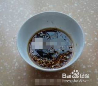 3.准备调料汁,大蒜切成蒜蓉,加生抽等调料调成料汁,汁直接倒茼蒿上即可。