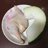 鸭腿在凉水里浸泡2小时以上去血水,中途多换几次清水,冬瓜洗干净备用