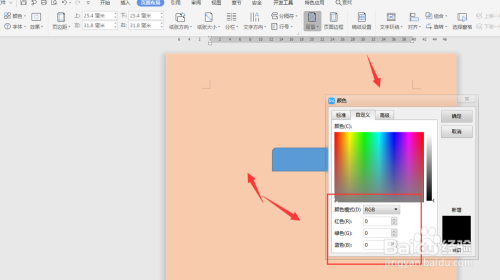 6.打开更多颜色设置,可以输入RGB值更改当前页面颜色
