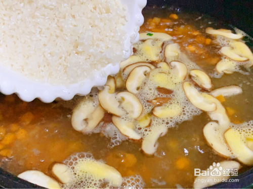 加入洗净的大米煮熟