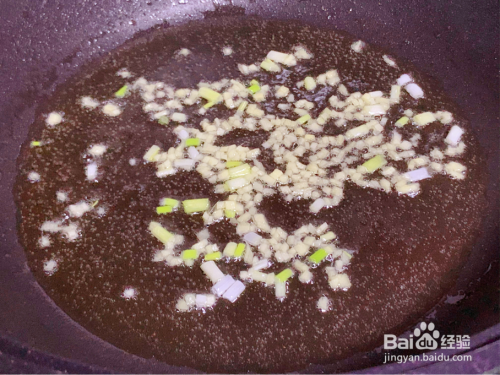起锅热油,下蒜白姜末炒香