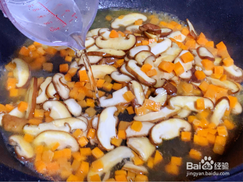 倒入胡萝卜和香菇翻炒软