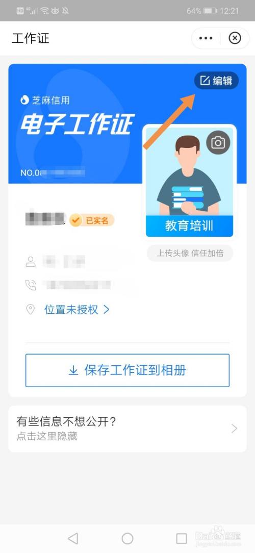 来到“工作证”界面,点击界面右上角的“编辑”。
