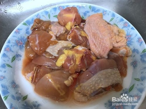 鸡半只切小块。下生抽和少许盐腌15分钟。