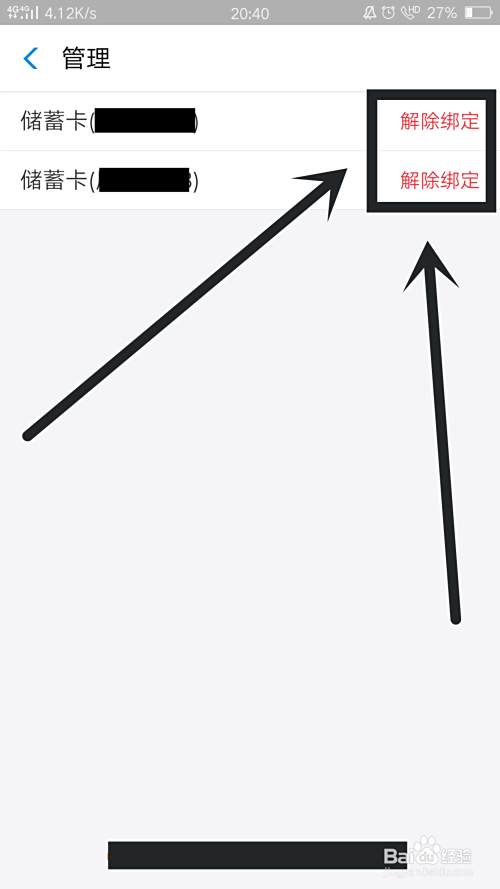 在银行卡管理设置中,点击右侧的解绑按钮即可,如图所示
