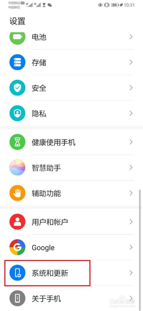 2,在手机设置页面,打开系统和更新;