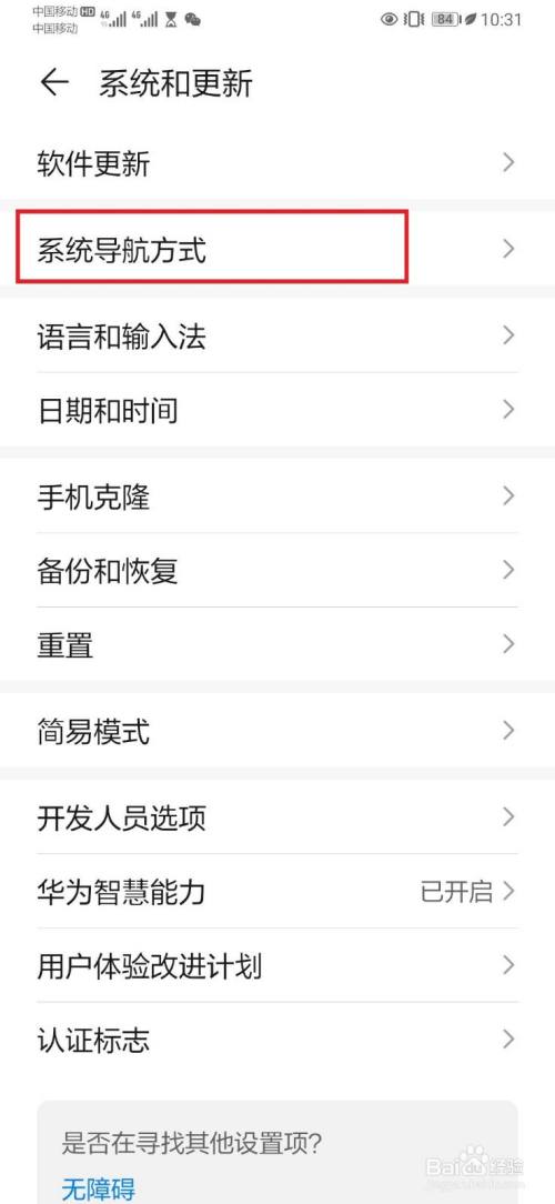 进入系统和更新设置页面,选择打开【系统导航方式】选项,如下图所示。