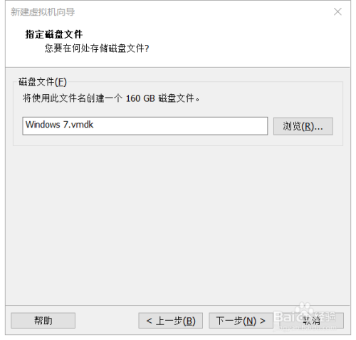 根据个人需求选择容量大小,无特殊要求保持默认值就好,注意:此处千万不要选择“立即分配所有磁盘空间”,那样会导致虚拟机文件直接创建相应大小的文件,就是假设你建立了一个160GB的磁盘,虚拟机会立即在物理磁盘中创建一个160GB大的文件,并且在物理磁盘分区容量不足时,会创建文件失败。如果不选择,则会建一个很小的磁盘文件,然后在虚拟机的使用过程中,根据存储的内容不断扩大文件;在创建的过程中,即使物理磁盘分区容量小于我们要建立磁盘的容量时,也能够正常创建。