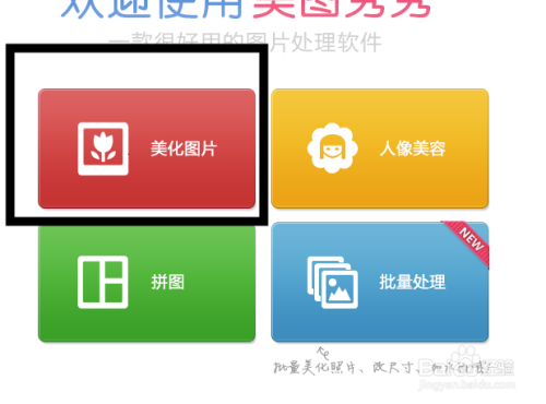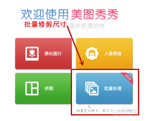 回到美图秀秀主页面,点击批量处理,然后下载,下载好之后使用美图秀秀批量处理器