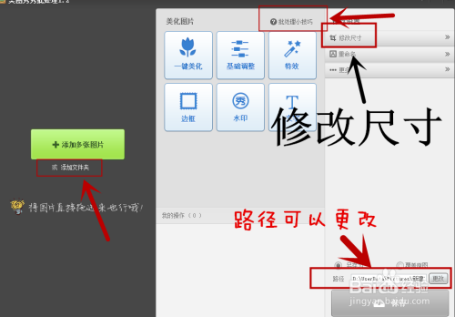 点开批量处理器,看右边,“添加多张图片”这个方法是先点击“添加多张图片”然后按住Ctrl键不放。同时添加,然后打开,图片就能同时出现在右下角,(如下图)然后修改尺寸。