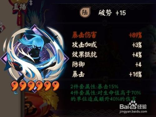 御魂强化除了靠脸,还有一些小操作。比如,当你6星御魂只有三种副属性却不是你最想要的,你可以强化到3看是否出你想要的属性。再或者6星御魂副属性很差,但是有一个你想要的暴击。你可以试着强化到3,是否强化到你要的暴击等属性,若有再强化到9;若没有则继续强化到6,仍然不是你要的则可以考虑放弃。(下图的破势则是,缺少暴击,但是强化出来后,却一直都加到暴击。)