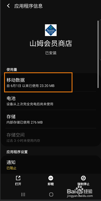 进入山姆会员商店应用程序找到移动数据点击允许后台流量使用右侧的按钮即可关闭