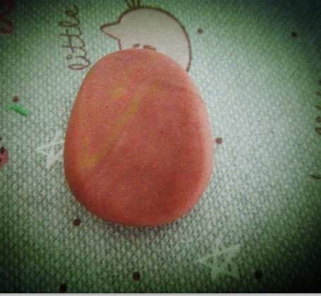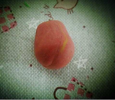 1准备一块棕红色的橡皮泥,揉成圆形,再拿捏成椭圆块状。