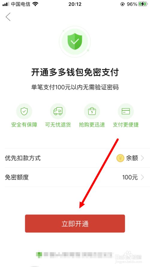 然后,点击【多多钱包免密支付】后面的【立即开通】。