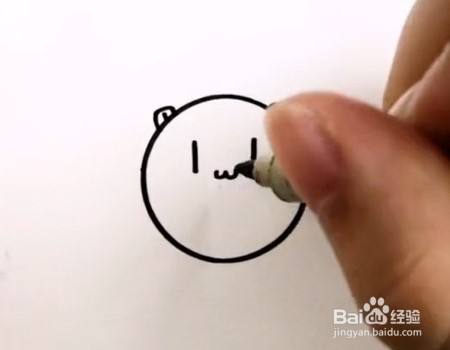 在圆里面画两条竖线当眼睛,然后在眼睛下方画一个“w”当嘴巴。