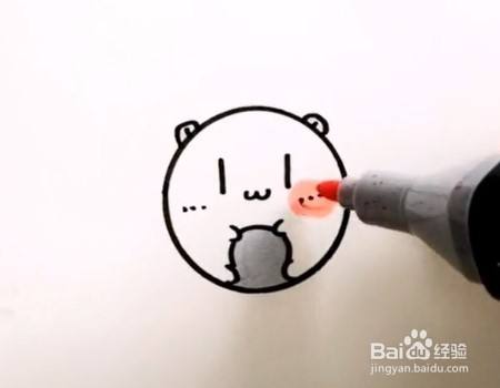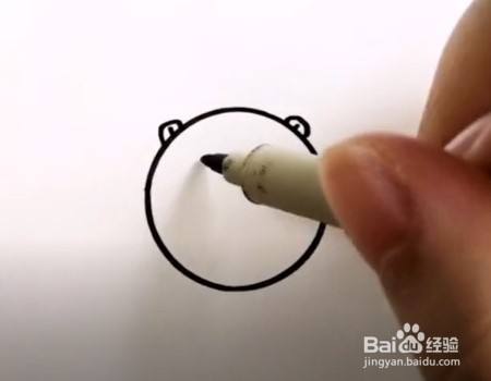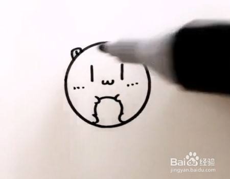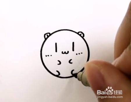 在圆上左右两边画两个椭圆当耳朵,椭圆里面点上两点更可爱哦。