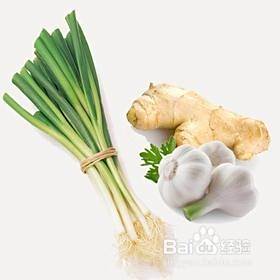 3.准备好葱姜蒜,这是我们做红烧鸡爪的重要的配料,葱姜蒜的选择也要选择好。