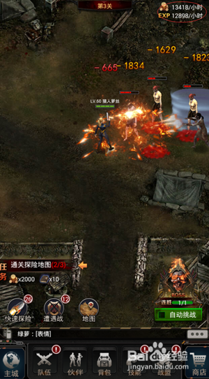 游戏主要的经验获取方式是探险,探险可以挂机选择自动挑战BOSS,通过击杀小怪和BOSS可以获得大量经验。