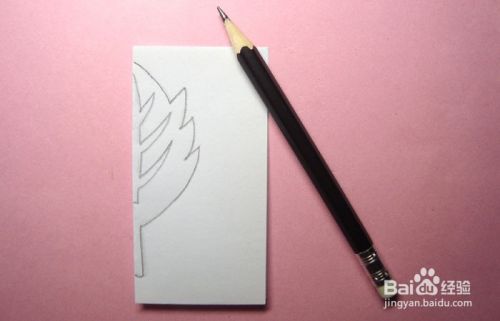 接着,把正方形卡纸对折一半,并用铅笔在白纸上,画出漂亮的枫叶图形,根据对称图形,这里画出半个图形,如下图所示。