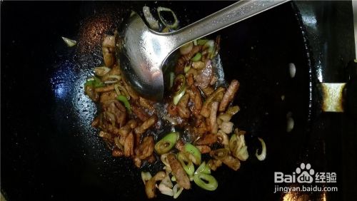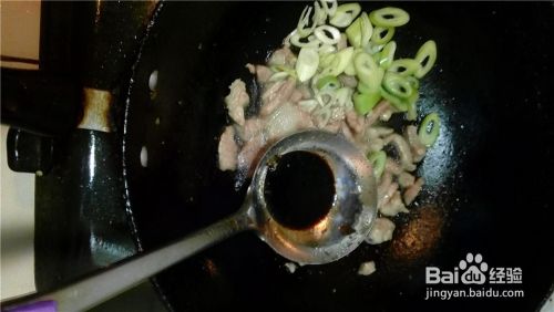 肉丝炒变色后,放入花椒面葱花盐酱油
