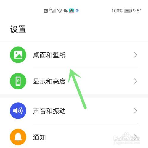 接着在设置界面,点击“桌面和壁纸”选项进入。